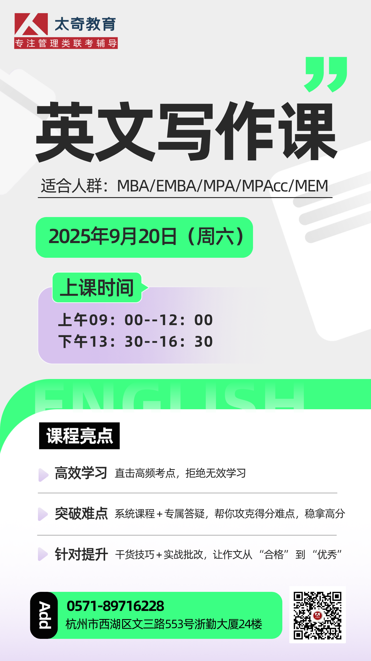 9月20日|2025MBA MEM等管理类联考英文写作课通知 |