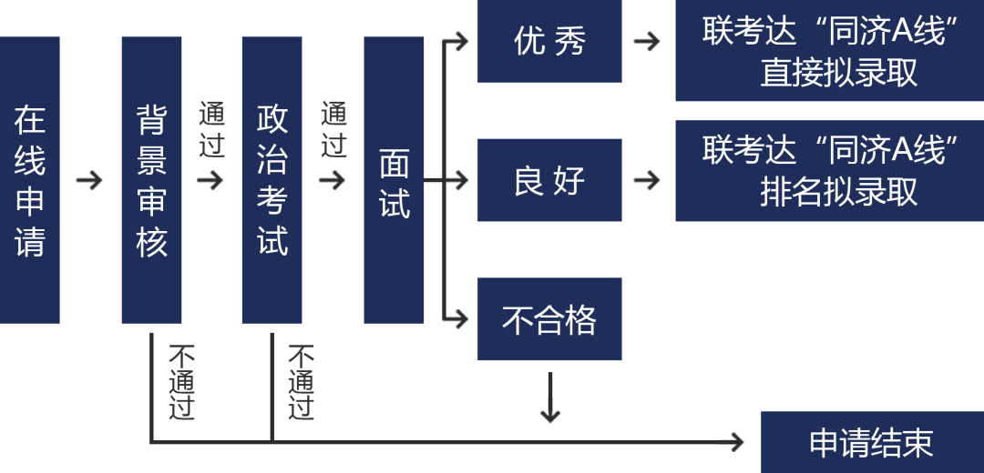 注:1.同济MBA项目原则上要求申请人全部参加预审核,即申请人在参加全国统一管理类联考笔试前要进行预审核(背景审核、政治考核和面试)。