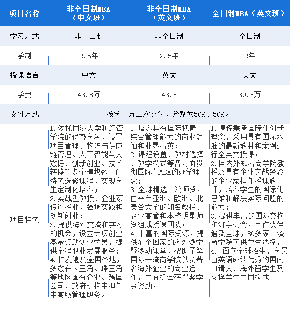 2.全日制项目与非全日制项目申请流程与规则相同,同济MBA根据研究方向单独划定分数线。